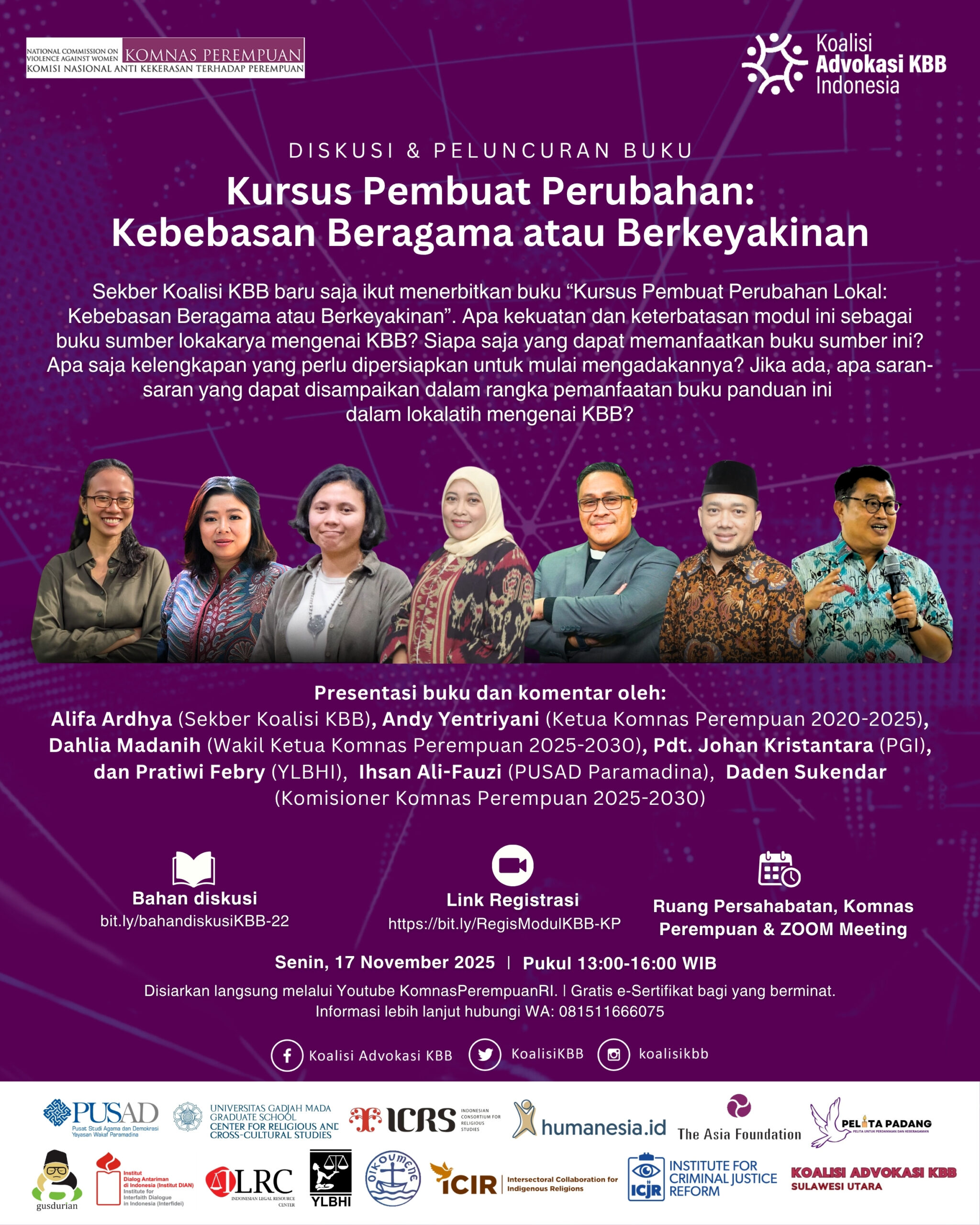 Sekber Koalisi Advokasi KBB, dan Komnas Perempuan mengundang kawan-kawan hadir dalam Diskusi & Peluncuran Buku (Hybrid)