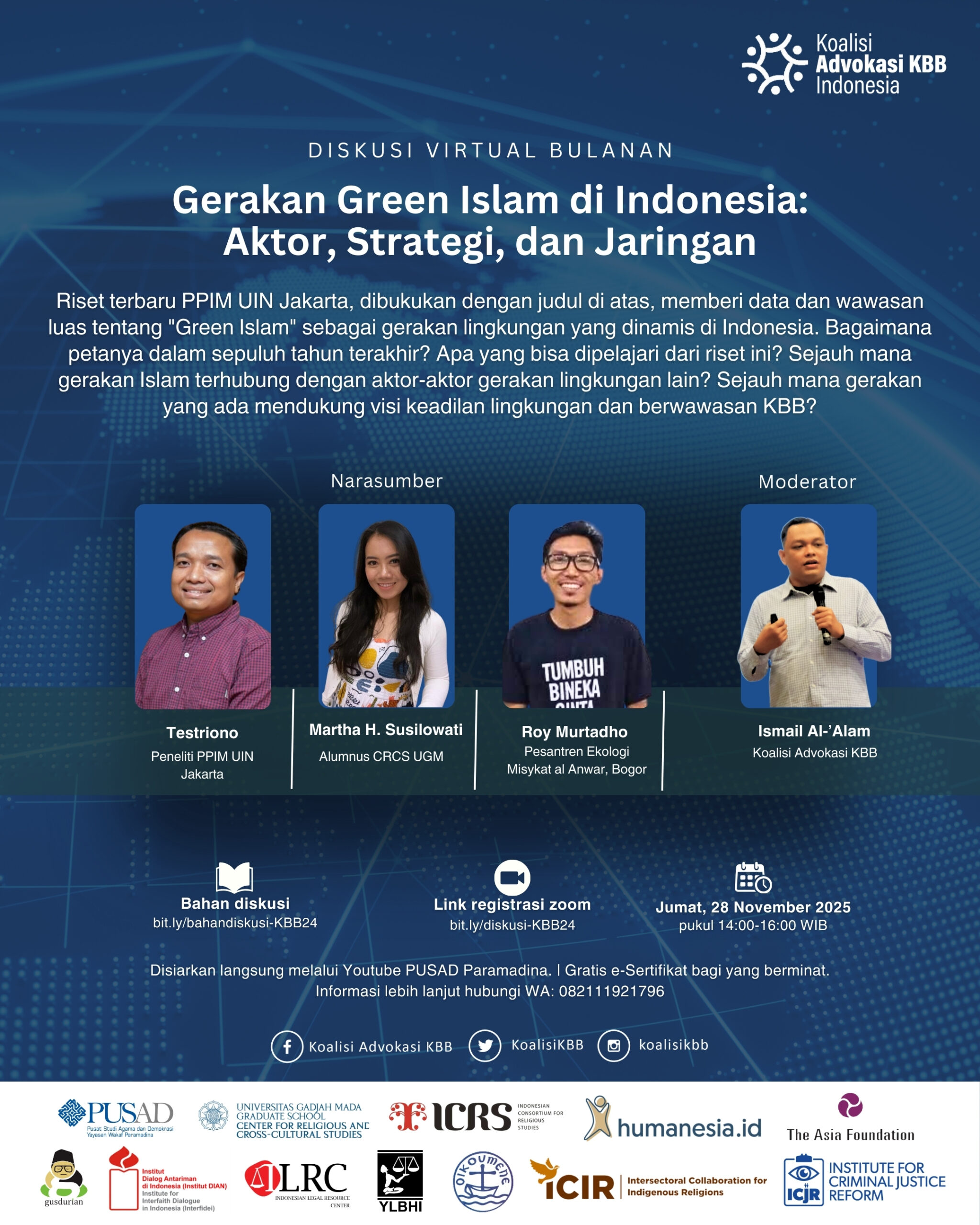 20 Nov Diskusi Virtual Bulanan “Gerakan Green Islam di Indonesia: Aktor, Strategi, dan Jaringan” đź—“