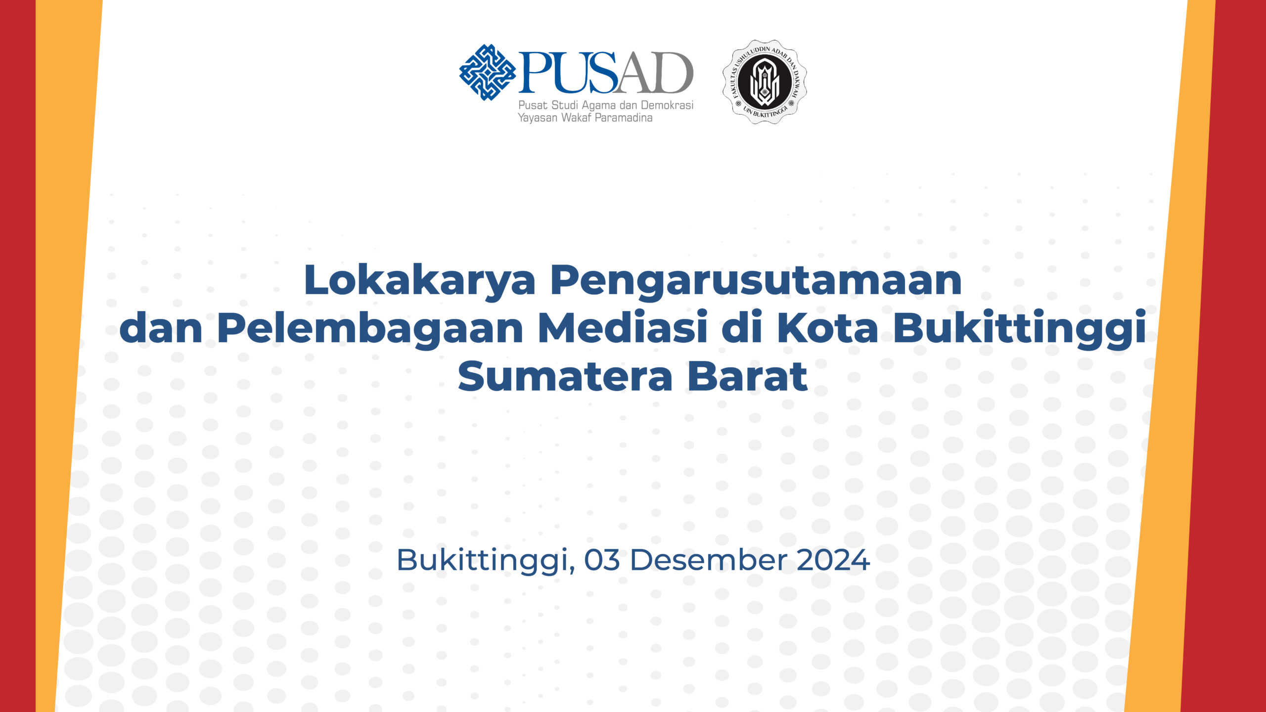 28 Nov Lokakarya Pengarusutamaan dan Pelembagaan Mediasi di Kota Bukittinggi đź—“ Posted at 14:54h in Agenda by PUSAD Paramadina 0 Likes Related 03 Desember 2024 Scheduled ical Google outlook Agenda
