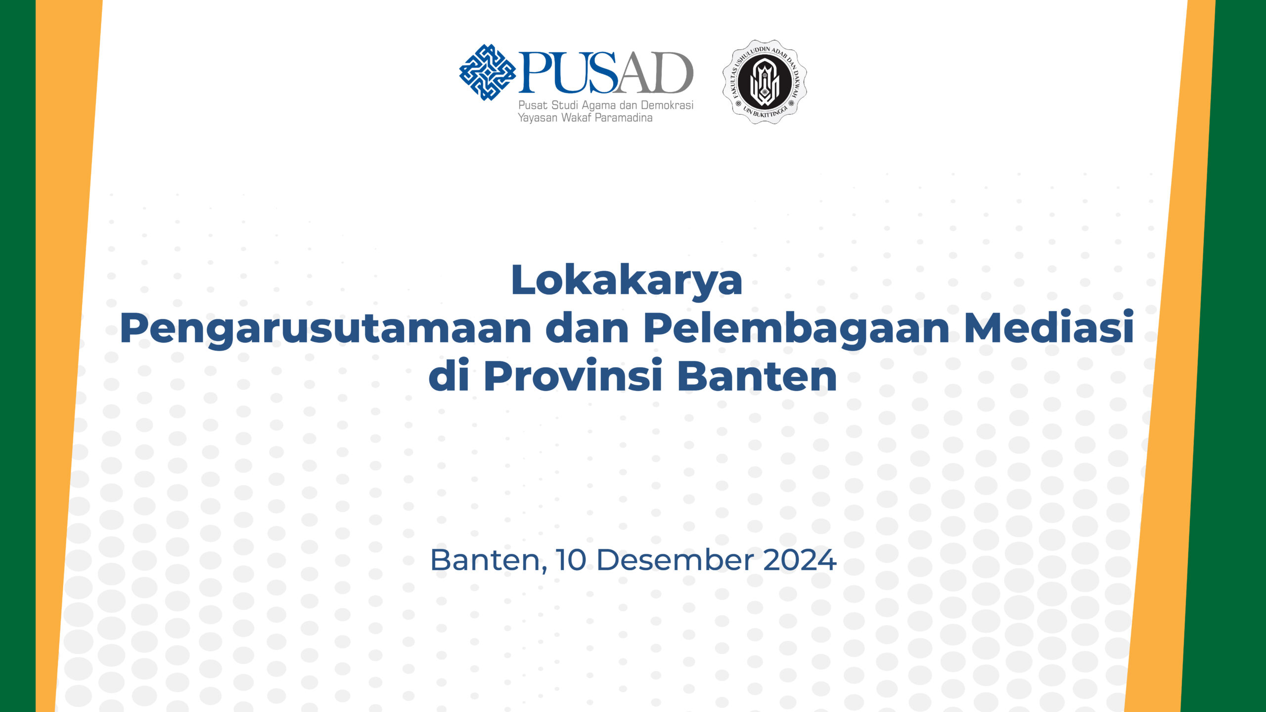 03 Des Lokakarya Pengarusutamaan dan Pelembagaan Mediasi di Provinsi Banten đź—“ Posted at 14:53h in Agenda by PUSAD Paramadina 0 Likes Related from 10 Desember 2024, 10:00 to 12 Desember 2024, 10:00 Scheduled ical Google outlook Agenda