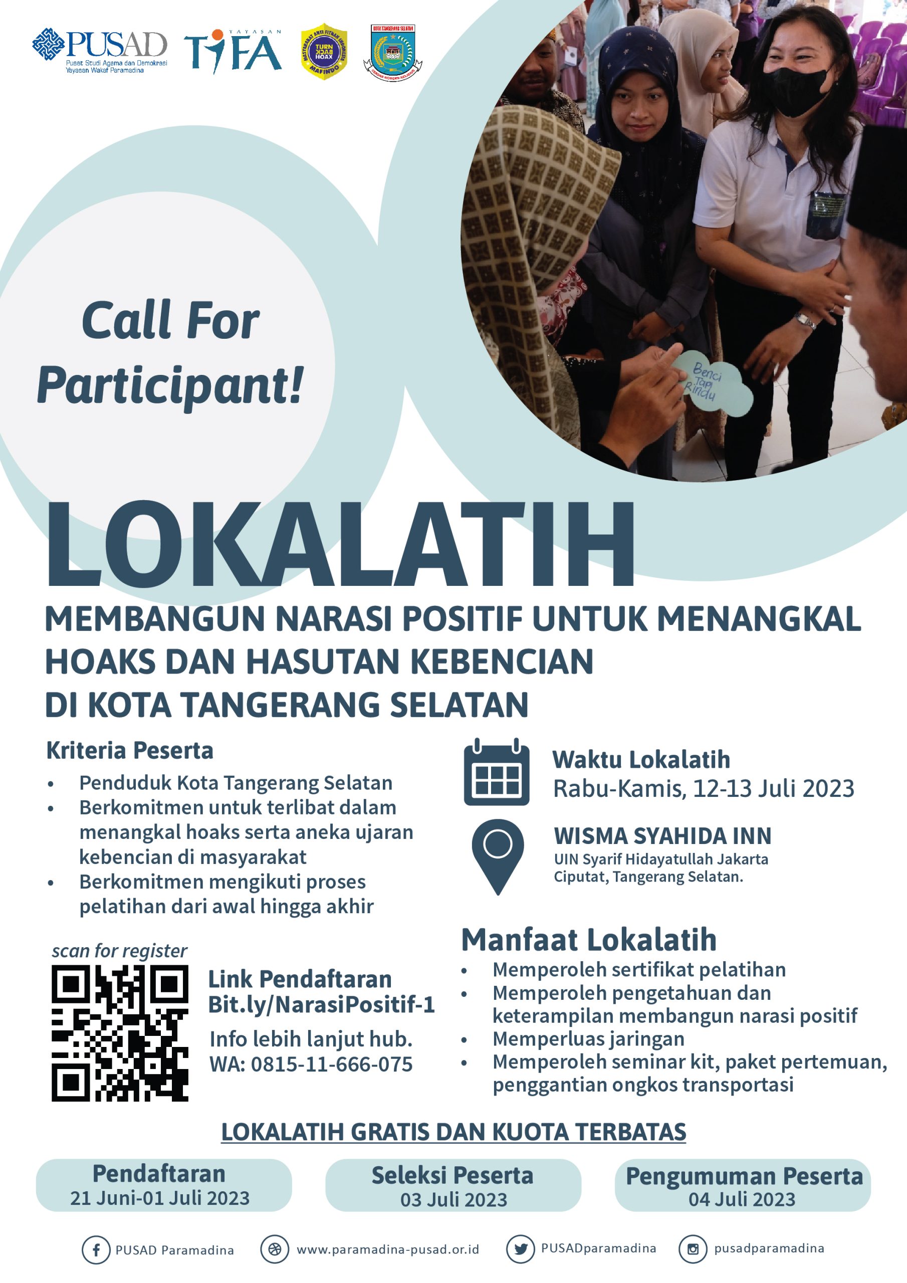 Bagi anda yang tinggal di Tangerang Selatan dan tertarik menjadi bagian dari pejuang melawan hoaks dan hasutan kebencian, silakan mendaftarkan diri anda melalui link https://bit.ly/NarasiPositif-1.